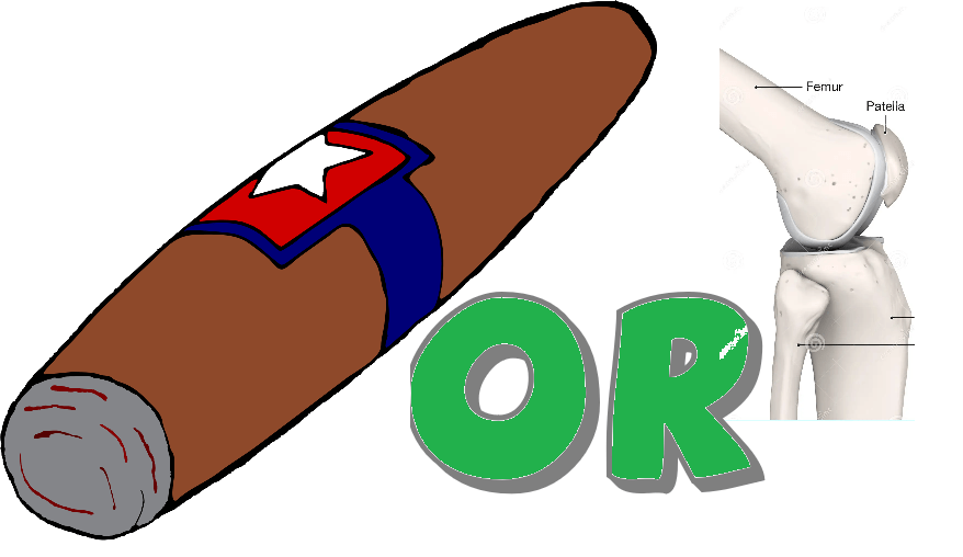 Shortly after I completed and posted my last masterpiece of whit, I came upon hard times. Actually, I came upon a hard rock. As I was taking a walk I slipped and smashed my knee into it. I dislocated my patella. Now I always thought a patella was a cigar. This week I learned a panatella is a cigar. A patella is a bone which causes you great pain when you dislocate it. Trust me on this. I learned this lesson extremely well. I could pass med-school exams on the subject.